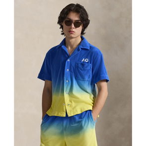 Buttoned-Placket Long-Sleeve Polo Shirt