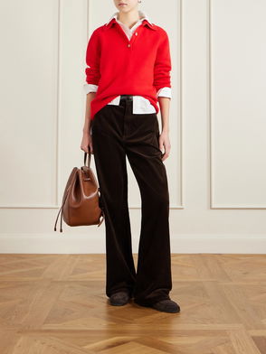 Polo ID Small Leather-Trimmed Suede Shoulder Bag