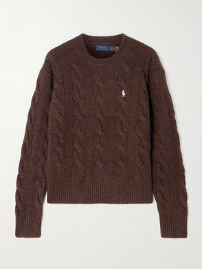 Embroidered Cable-knit Wool And Cashmere-blend Sweater