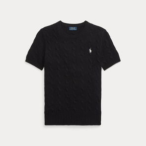Cable Wool-Cashmere Short-Sleeve Sweater