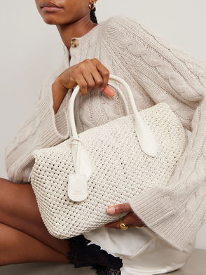 Polo Play Medium Textured Leather-Trimmed Crocheted Cotton Tote