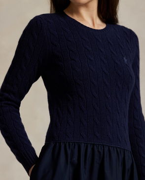 Cable-Knit Poplin Dress