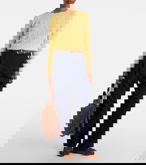 Logo-Embroidered Cropped Cable-Knit Cotton Sweater