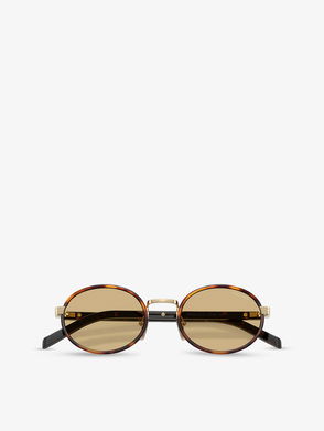 PR B56S Round-Frame Tortoiseshell Metal Sunglasses