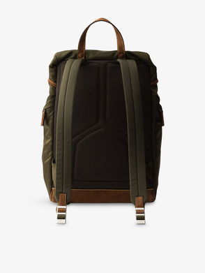 Brand-Plaque Nylon And Saffiano-Leather Backpack