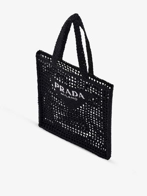 Brand-embroidered Crochet Tote Bag