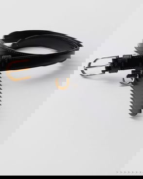 Curve-Buckle Leather Belt