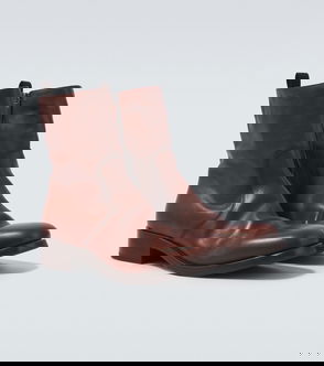 Triangle-Plaque Lugged-Sole Leather Work Boots