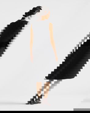 Pleated Hopsack And Technical Fabric Skirt