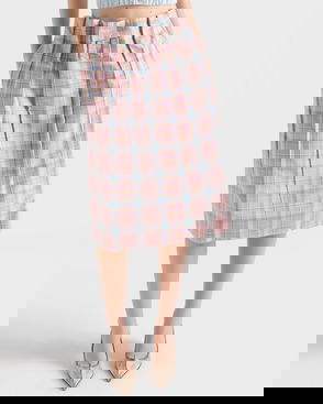 Checked Cotton Midi Skirt