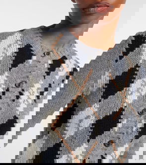 Triangle-Appliqué V-neck Wool Knitted Cardigan