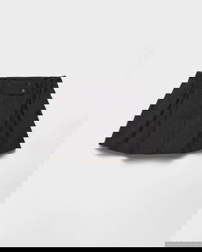 Pleated Wool Hopsack Skirt