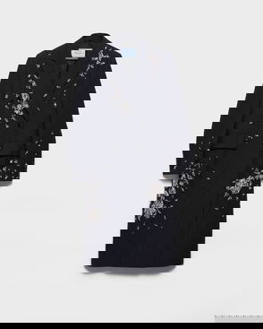 Embroidered Double-breasted Rush Stitch Wool Coat