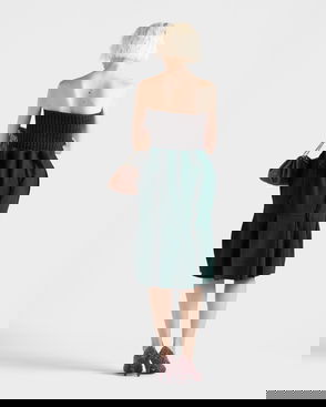 Pleated Hopsack And Technical Fabric Skirt