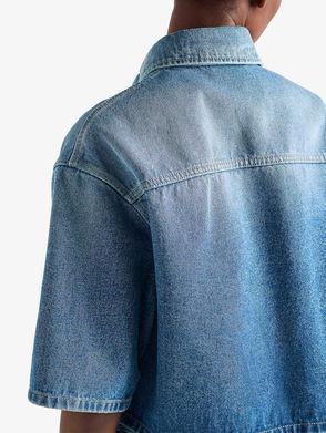 Triangle-Logo Cropped Denim Shirt