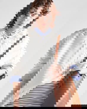 Drawstring-Hem Long-Sleeve Cotton-Poplin Shirt