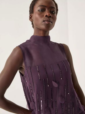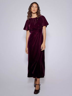 Sheer Sleeve Bias Cut Midi Dress, Purple
