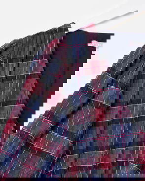 Blue & Red Checked V-Neck Puff Sleeve Midi Dress