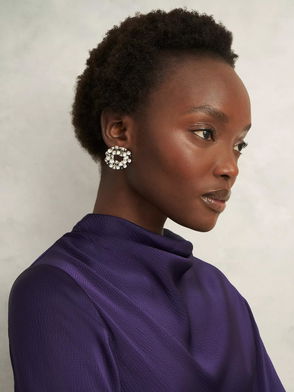 Pearl Drape Midi Dress, Midnight Purple