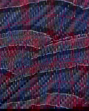 Blue & Red Checked V-Neck Puff Sleeve Midi Dress
