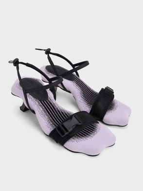 Nylon Wave-Edge Sculptural-Heel Sandals
