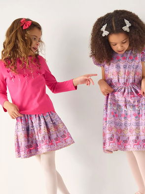 Kids' Magical Satin Unicorn Print Skirt, Purple