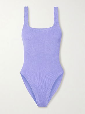 Amber Cotton-Blend Chambray Halterneck Swimsuit