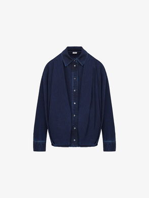 Draped Denim-Look Cotton Shirt