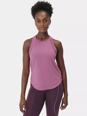 Satin Look High Neck Draped Sleeveless Top In Purple