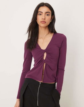 Abercrombie & Fitch Long Sleeve Cut Out Twist Top In Plum