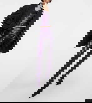 Check Wool Blend Wide Leg Trousers, Burgundy Purple