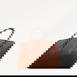 Muswell Lane Leather Medium Ziptop Grab Bag In Dark Oak