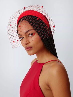 Reina Headband With Veil, Red