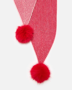 Red & Pink Striped Pom Pom Skinny Knitted Scarf