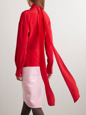 Lace-trimmed Pintucked Silk-crepe Blouse