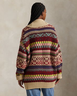 Rib-Knit Scallop-Trim Cardigan In Burgundy