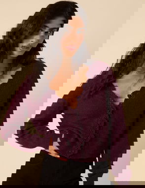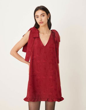 V Neck Bow Shoulder Mini Dress With Ruffle Hem