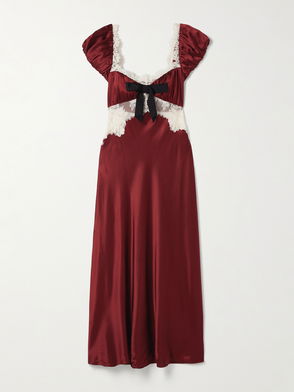 Veda Bow-Detailed Corded Lace-Trimmed Silk-Charmeuse Midi Dress