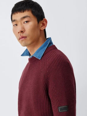 Merino Wool Open-Collar Polo Shirt In Port Red