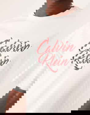 Jeans Large Script Graphic T-shirt In White And Red
