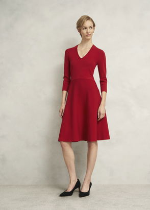 Berry Red Corduroy Embroidered Sleeve V-Neck Mini Dress