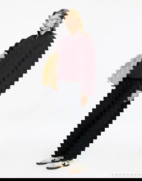 Wool Knitted Oversized Sweater With Deep Rib Hem In Black