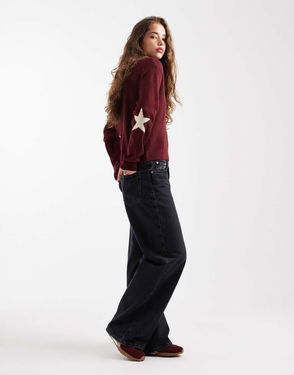 High Neck Relaxed Knitted Sweater In Burgundy Plum
