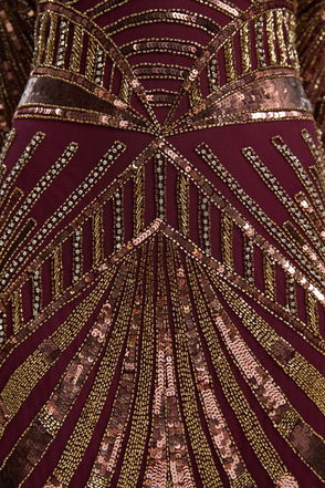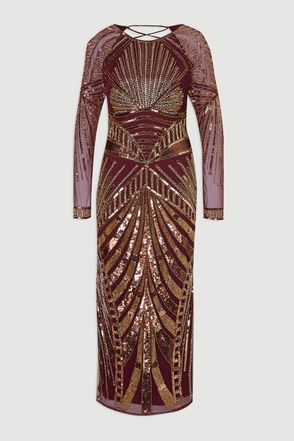 Premium Mirrored Crystal Embellished Woven Long Sleeve Column Dress