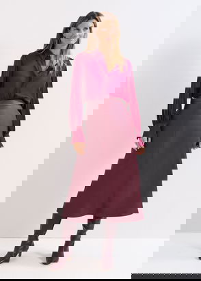 Long Sleeve Midi Collared Knitted Dress In Dark Red Burgundy