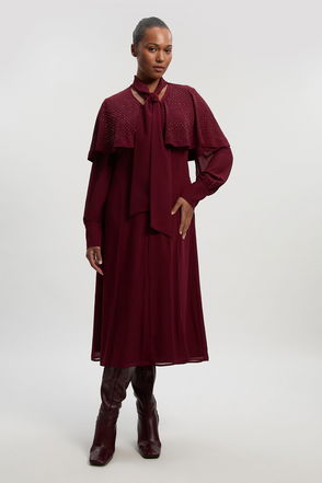 Plus Size Hotfix Studded Tie Neck Detail Cape Woven Maxi Dress