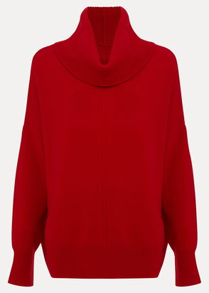 Libra High Neck Wool Rich Knit Top, Dark Red