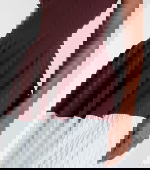 Wool Mix High Neck Frill Edge Knitted Top In Burgundy