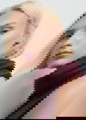 High Neck Long Sleeve T-shirt In Burgundy