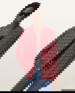 Double Layer Wool Jacket With Button Front And Front Pockets In Burgundy